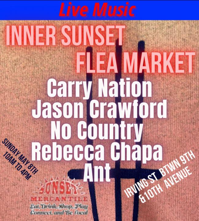 Live music all day! Performances by Ant (10 am), Rebecca Chapa (11 am), No Country (Noon), Jason Crawford (2 pm) and Carry Nation (3 pm). Come on out and connect with the community and be sure to explore all the amazing shops and restaurants of the Inner Sunset! More details at www.isflea.com. Our festive family-friendly event is smoke-free.