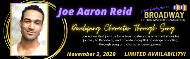 Joe Aaron Reid joins us for a true master class which will share his journey to Broadway and provide in-depth knowledge on acting through song and character development. Joe Aaron will directly work with some participants while all attendees gain valuable insight and knowledge for an important skill no matter your role.
